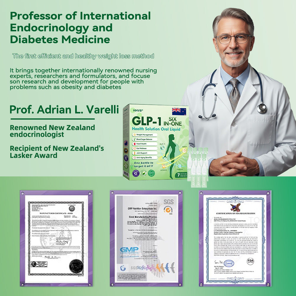 GLP-1 SIX-IN-ONE Health Solution Oral Liquid was developed by a team of over 30 experts in international endocrinology and diabetology after more than 3 years of research. It combines Tirzepatide with powerful herbal ingredients to boost metabolism, accelerate fat burning, and support digestive and lymphatic health. This oral solution has been approved by the New Zealand Food and Drug Administrationย for its safety and efficacy, offering a scientifically backed solution for weight loss and overall wellness.